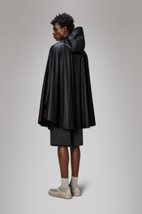 Cape is a modern take on the classic rain poncho, modified for cyclists and an active lifestyle. Characterized by a loose and billowing silhouette. The cape has a light fit with a snap-fastened half placket. Optional sleeves can be created through snap fastenings at arms. Thumbholes ensure a secure fit even during cycle commutes. Cape is finished with a hood with built-in cap and drawstring. This roomy cape with an elegant drape is cut from Rains' signature PU fabric and features welded seams. The finish is lightweight with a slightly structured feel. SKU: 18800\84 Details Composition: 100.00% PES (Polyester) Water column: 5000 mm Windproof: Protection against windchill Fit: Long Weight: 22.9 oz Features - Waterproof signature PU fabric - Hood with built-in cap and drawstring - Half placket with snap closure - Snap-fastened optional sleeves with thumbholes