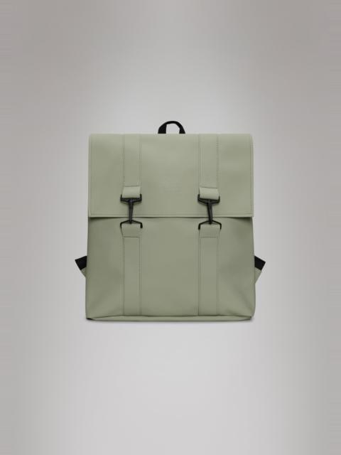 MSN Bag reinterprets the classic school backpack for city-ready wardrobes. Characterized by a minimalistic silhouette and flap with carabiner closure. This bag features an internal laptop pocket, a spacious main compartment and finished off with snap compressions at opening and sides. The laptop pocket fits a 13" laptop with sleeve, making the MSN Bag a perfect computer-ready staple for everyday commutes. MSN Bag is cut from Rains' signature PU fabric, engineered for carrying strength, durability and a smooth feel. SKU: 13300\01 Details Composition: 100.00% PES (Polyester) Water column: 8000 mm Weight: 30.7 oz Features - Waterproof signature PU fabric - Flap with signature carabiner closure - Single main compartment - Padded pocket fits 13" laptop - Snap compressions at opening - Side-mounted snap compression - Adjustable shoulder straps - Webbing carry handle