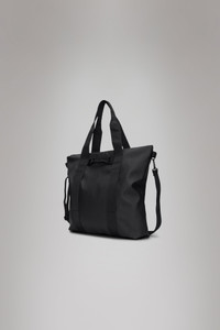 Tote Bag is a waterproof tote perfect for shopping, commutes or the office. Characterized by an elevated utility-look and functional details. The full-length coated zip reveals a spacious main compartment and a zip pocket for small items. Designed to meet your carry-needs, Tote Bag offers various carrying options through its detachable shoulder strap, long hand/shoulder handles and side-mounted grab handle. Carry handles feature attachment rings for small items like keys. Tote Bag is cut from Rains' signature PU fabric, engineered for carrying strength, durability and a smooth feel. SKU: 14150\01 Details Volume (liter): 6.1 gal Composition: 100.00% PES (Polyester) Water column: 8000 mm Weight: 25.4 oz Features - Waterproof signature PU fabric - Coated tonal zip closure - Single main compartment - Internal zip pocket - Long hand/shoulder webbing handles with attachment ring - Side-mounted webbing grab handle - Detachable webbing shoulder strap