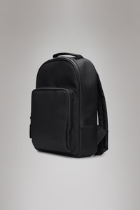 Book Daypack is a minimal silhouette in campus-ready proportions. Design is characterized by its curved top and sharp base. This waterproof rucksack features a spacious main compartment with an internal padded pocket. Design is finished off with a large front zip pocket with easy access. The laptop pocket fits a 15" laptop, making the Book Daypack a computer-ready staple for campus or work. Book Daypack is cut from Rains' signature PU fabric, engineered for carrying strength, durability and a smooth feel. SKU: 13260\01 Details Composition: 100.00% PES (Polyester) Water column: 8000 mm Weight: 26.5 oz Features - Coated zip closure - Single main compartment - Front zip pocket - Padded pocket fits 15” - Padded mesh back panel - Adjustable padded backstraps - Webbing carry handle