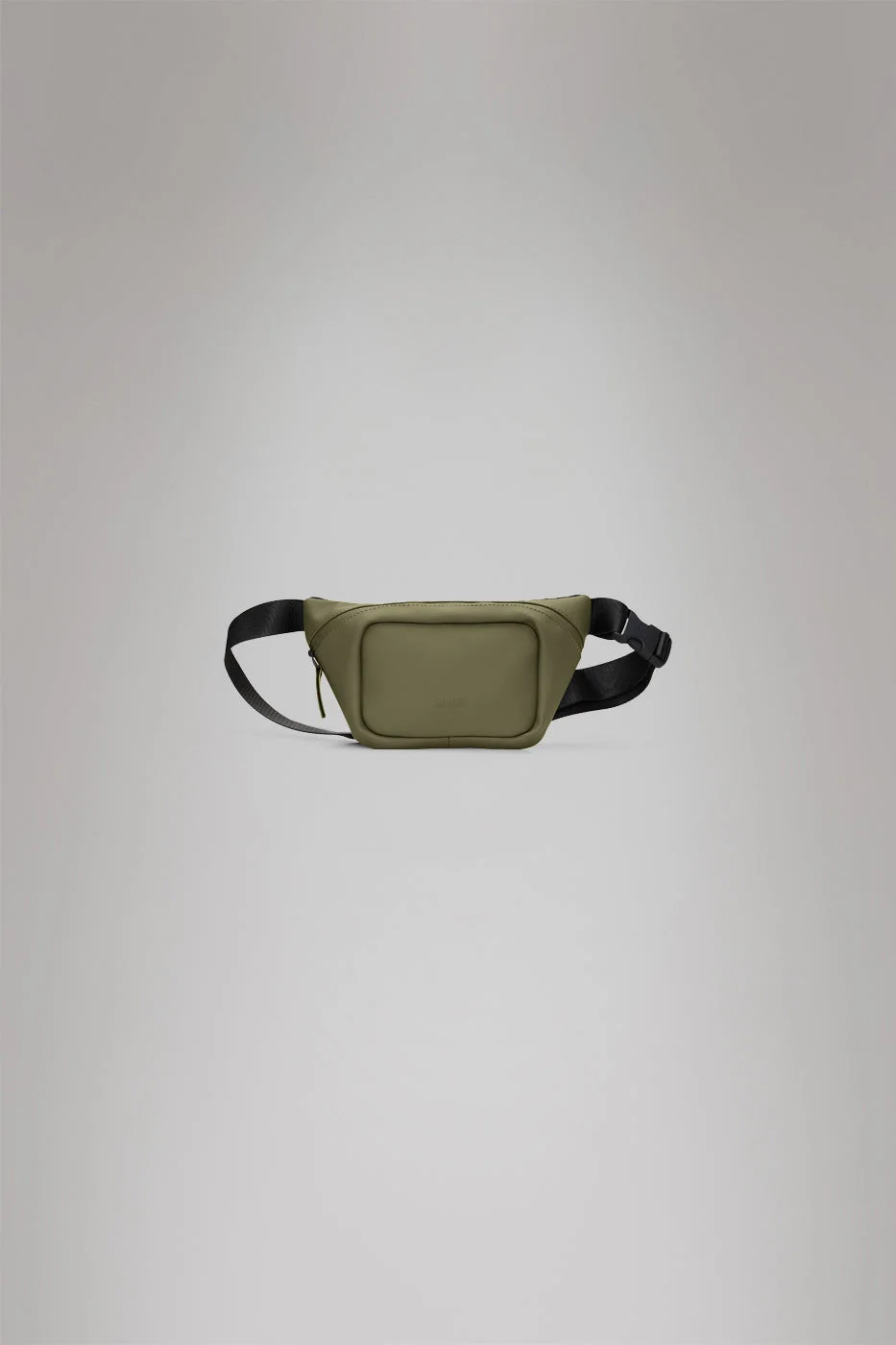Bum Bag Mini is a downscaled version of Rains' signature Bum Bag. It's mini, yet big enough to fit daily essentials. Bum Bag Mini holds just about everything you need -- card, key and phone. It's designed for optimal functionality when on-the-move. The waterproof design features a single main compartment and coated zip closure for easy access. Bum Bag Mini is fixed to an adjustable webbing strap and fastens with a convenient quick-release buckle. The design is perfectly formed and can be worn over the shoulder, as a cross body bag or as a waist belt depending on preference and everyday-need. Bum Bag Mini is cut from Rains' signature waterproof PU fabric, engineered for carrying strength, durability and a smooth feel. SKU: 14730\134 Details Dimensions: 6.7 in x 1.8 in x 11.8 in Composition: 100.00% PES (Polyester) Water column: 8000 mm Weight: 7.4 oz Features - Waterproof signature PU fabric - Coated tonal zip closure - Single main compartment - Adjustable webbing strap - Fast-release buckle closure