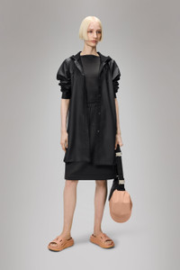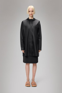 A-Line Jacket is a women's raincoat characterized by its A-shaped silhouette in an elegant design. A-line Jacket gradually builds in volume from chest to hem with a soft, lightweight feel and elegant drape. It features a drawstring hood with built-in cap, two side pockets and snap adjustable cuffs. This rain coat is completed and closed with hidden snap buttons and a front placket. Under-arm eyelets ensure ventilation for breathable comfort. A-Line Jacket is cut from Rains' signature PU fabric and features welded seams, making the jacket both resistant to water and wind. The finish is lightweight with a smooth feel. SKU: 18050\01 Details Composition: 100.00% PES (Polyester) Water column: 5000 mm Windproof: Protection against windchill Weight: 16.9 oz Features - Waterproof signature PU fabric - Hood with built-in cap and drawstring - Hidden snap button closure - Two paspel pockets - Snap adjustment at sleeve cuffs - Ventilation eyelets under arms - Welded seams - Pleat at center back - A-shaped fit