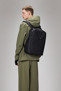 Clip Front Backpack is a waterproof design for an urban, outdoor lifestyle - perfect for commutes in the city. Clip Front Backpack features a round zip opening for full access and a second c-clip closure at the front. Unclip the front closure to reveal a “hidden” pocket or clip over for extra security when traveling. The backpack is designed with great functionality, wrapped in a commuter-friendly silhouette. The main compartment features several smaller pockets, key storage loop and a padded slip pocket for a 16” laptop. The exterior has side pockets for water bottle, umbrella etc. and a D-ring for keys. The padded back panel, adjustable padded back straps and chest strap assures great comfort when on the move. Clip Front Backpack is cut from Rains' signature PU fabric, engineered for carrying strength, durability and a smooth feel. SKU: 14890\01 Details Dimensions: 17.3 in x 6.3 in x 11.8 in Composition: 100.00% PES (Polyester) Water column: 8000 mm Weight: 33.2 oz Features - Waterproof signature PU fabric - Rounded coated zip opening - Second closure with c-clip at front - Hidden exterior front pocket behind c-clip - Two side pockets for water bottles etc. - D-ring hardware for keys etc. - Single main compartment - Padded slip pocket - fits 16” laptop - Internal secure zip pocket - Internal hanging mesh pocket - Internal key storage loop - Adjustable padded shoulder straps with chest strap - Padded mesh back panel - Webbing top handle with grip