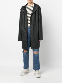drawstring hood raincoat Highlights - Black - Waterproof - Two side flap pockets - Front press-stud fastening - Drawstring hood - Long sleeves - Mid-length - Straight hem - When buying this unisex item, keep in mind that it is graded in standard men's sizing. Imported Composition Polyurethane 100%, Polyester 100% SIZE & FIT Model measurements Height 5 ft 9 in(1.76 m) Bust/Chest 33.46 in(85 cm) Hips 37.79 in(96 cm) Waist 25.59 in(65 cm) FittingInformation This piece fits true to size. We recommend you get your regular size Cut for a loose fit Made with a mid-weight fabric Measurement CHEST 43.3 in(110 cm) SLEEVE LENGTH 25.19 in(64 cm) Shoulder Width 18.89 in(48 cm) WAIST 44.09 in(112 cm)