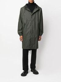 drawstring hooded raincoat Highlights - Green - Waterproof - Two side flap pockets - Concealed front zip fastening - Drawstring hood - Long sleeves - Elasticated cuffs - Long length - Drawstring hem - When buying this unisex item, keep in mind that it is graded in standard men's sizing. Imported Composition Polyester 100%, Polyurethane 100% SIZE & FIT Model measurements Height 5 ft 11 in(1.8 m) Bust/Chest 31.49 in(80 cm) Hips 35.82 in(91 cm) Waist 24.8 in(63 cm) Washing instructions Machine Wash