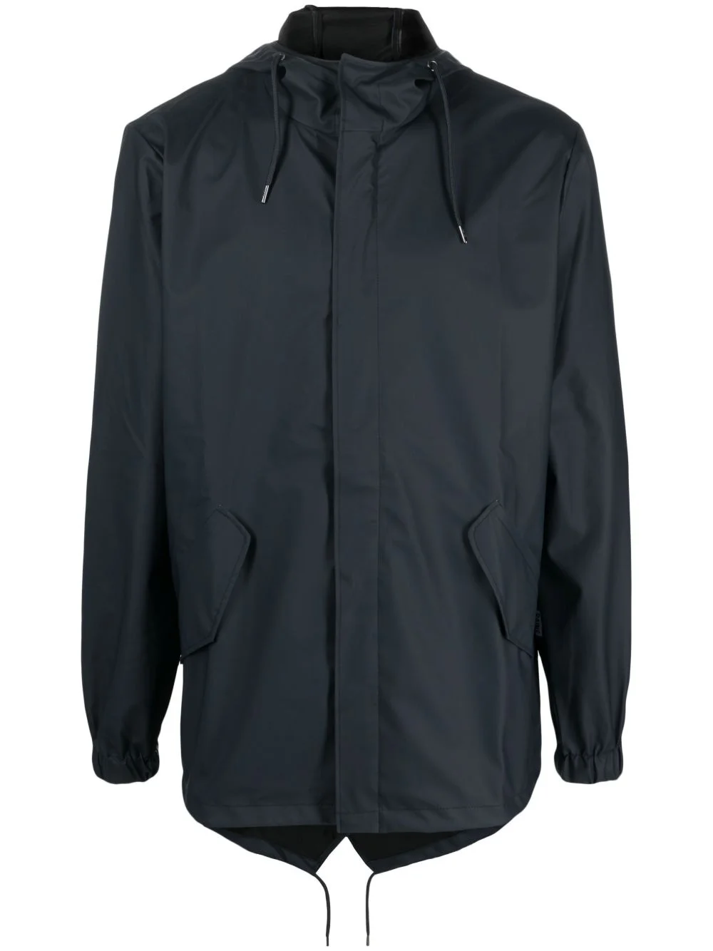 Fishtail hooded raincoat Highlights - Midnight blue - Waterproof - Windproof - Lightweight - Yoke design - Drawstring hood - Concealed front zip fastening - Long sleeves - Two side flap pockets - Elasticated cuffs - Drawstring hem Imported Composition Polyester 100%, Polyurethane 100% SIZE & FIT Model measurements Height 6 ft 1 in(1.86 m) Bust/Chest 36.61 in(93 cm) Hips 37 in(94 cm) Waist 28.74 in(73 cm) FittingInformation Designed to be unstructured, offering a loose fit throughout The internal drawstring at the hem allows for fitted preferences Made from a lightweight non-stretch fabric, this piece offers minimal elasticity when worn This piece fits true to size – take your usual size
