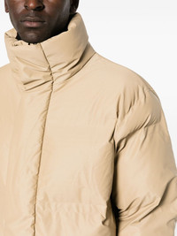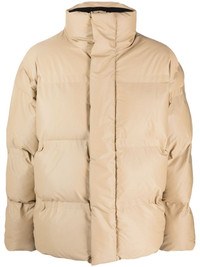 funnel-neck padded jacket Highlights - Sand beige - Padded design - Quilted - Funnel neck - Concealed front zip fastening - Long sleeves - Straight hem - When buying this unisex item, keep in mind that it is graded in standard men's sizing. Imported Composition Outer: Polyester 100% Lining: Polyurethane 100%, Polyester 100%, Nylon 100% SIZE & FIT Model measurements Height 5 ft 10 in(1.77 m) Bust/Chest 29.92 in(76 cm) Hips 34.25 in(87 cm) Waist 23.62 in(60 cm) Measurement CHEST 46.45 in(118 cm) SLEEVE LENGTH 25.19 in(64 cm) Shoulder Width 20.86 in(53 cm) FittingInformation This unisex piece is designed for a loose fit whether you usually select women's or men's sizes The internal drawstring at the hem allows for fitted preferences Made from a padded non-stretch fabric, giving it no natural elasticity This piece fits true to size – take your usual size