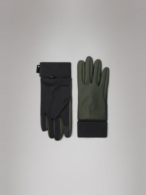 Gloves are an insulated accessory with a clean aesthetic, keeping your hands warm and dry in cold and rainy weather. Design features touchscreen compatible thumb and forefinger tips, neoprene palms and folded ribbed cuffs. These staple gloves are an insulated accessory cut from Rains' signature PU fabric with a fleece lining inside for extra warmth and comfort. The finish is lightweight with a smooth feel, making the gloves practical on commutes on bike or by foot. SKU: 16720\133 Details Composition: 100.00% PES (Polyester) Water column: 5000 mm Windproof: Protection against windchill Weight: 3.5 oz Features: