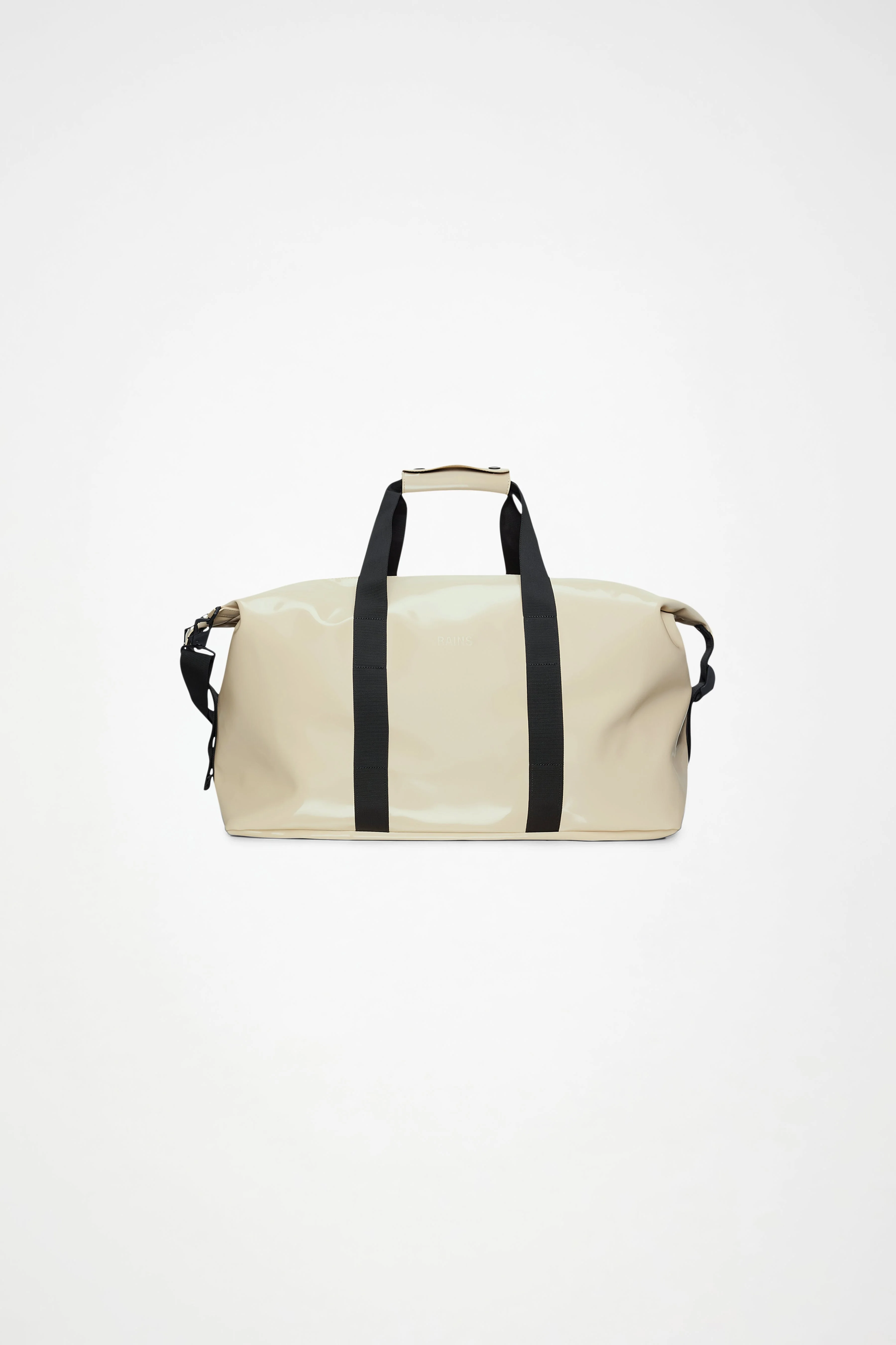 Hilo Weekend Bag is Rains’ take on the essential overnight bag – one of three available sizes. Hilo Weekend Bag is a clean and contemporary travel-favorite, balancing Rains’ waterproof fabric with signature straps and hardware details. Open the coated full-length zip to find a spacious single main compartment – with plenty of room for clothing, tech and more for a work trip or a weekend getaway. Once packed, secure belongings via the silhouette’s side-mounted compression straps. The design is finished with webbing carry handles, with comfort sleeve, and attachment rings for an included detachable shoulder strap. Hilo Weekend Bag is cut from Rains’ signature waterproof PU fabric, engineered for carrying strength, durability, and a smooth feel. SKU: 14200\149 Details Dimensions: 13.8 in x 10.2 in x 24.4 in Capacity: 9.5 gal Composition: 100.00% PES (Polyester) Water column: 8000 mm Weight: 27.9 oz Features: