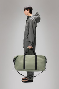 Hilo Weekend Bag Large is Rains’ take on the essential overnight bag – the largest of three sizes. Hilo Weekend Bag is a spacious, clean and contemporary travel bag, perfect for a weekend getaway. The design is balancing Rains’ waterproof fabric with signature straps and hardware details. Open the coated full-length zip to find a large single main compartment. It holds plenty of space for clothing, tech and more. Once packed, secure belongings via the silhouette’s side-mounted compression straps. The design is finished with webbing carry handles, with comfort sleeve, and attachment rings for an included detachable shoulder strap. Hilo Weekend Bag Large is cut from Rains’ signature waterproof PU fabric, engineered for carrying strength, durability, and a smooth feel. SKU: 14210\108 Details Volume (liter): 12.4 gal Composition: 100.00% PES (Polyester) Water column: 8000 mm Weight: 38.8 oz Features - Waterproof signature PU fabric - Coated zip closure - Single main compartment - Side compression straps - Detachable adjustable webbing shoulder strap - Webbing carry straps with handle wrap