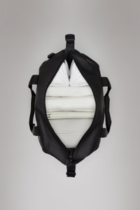 Hilo Weekend Bag Small is Rains’ take on the essential overnight bag – the smallest of three sizes. Hilo Weekend Bag Small is a true favorite when traveling light. The design is clean and contemporary, balancing Rains’ waterproof fabric with signature strap and hardware details. Open the coated full-length zip to find a spacious single main compartment – with room for clothing, tech and more. Once packed, secure belongings via the silhouette’s side-mounted compression straps. The design is finished with webbing carry handles, with comfort sleeve, and attachment rings for an included detachable shoulder strap. Hilo Weekend Bag Small is cut from Rains’ signature waterproof PU fabric, engineered for carrying strength, durability, and a smooth feel. SKU: 14220\125 Details Dimensions: 11.4 in x 7.1 in x 19.7 in Capacity: 4.8 gal Composition: 100.00% PES (Polyester) Water column: 8000 mm Weight: 17.6 oz Features - Waterproof signature PU fabric - Coated zip closure - Single main compartment - Side compression straps - Detachable adjustable webbing shoulder strap - Webbing carry straps with handle wrap