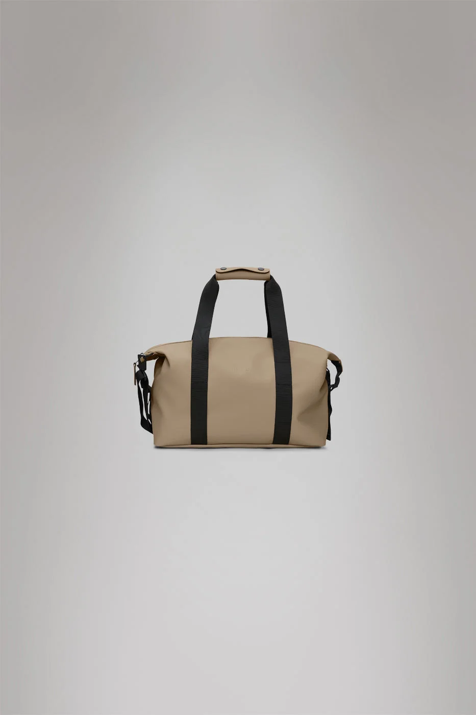 Hilo Weekend Bag Small is Rains’ take on the essential overnight bag – the smallest of three sizes. Hilo Weekend Bag Small is a true favorite when traveling light. The design is clean and contemporary, balancing Rains’ waterproof fabric with signature strap and hardware details. Open the coated full-length zip to find a spacious single main compartment – with room for clothing, tech and more. Once packed, secure belongings via the silhouette’s side-mounted compression straps. The design is finished with webbing carry handles, with comfort sleeve, and attachment rings for an included detachable shoulder strap. Hilo Weekend Bag Small is cut from Rains’ signature waterproof PU fabric, engineered for carrying strength, durability, and a smooth feel. SKU: 14220\133 Details Dimensions: 11.4 in x 7.1 in x 19.7 in Capacity: 4.8 gal Composition: 100.00% PES (Polyester) Water column: 8000 mm Weight: 17.6 oz Features - Waterproof signature PU fabric - Coated zip closure - Single main compartment - Side compression straps - Detachable adjustable webbing shoulder strap - Webbing carry straps with handle wrap