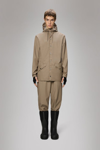 Jacket is an ever-contemporary unisex rain jacket. Characterized by a minimal silhouette with high functionality. This rain jacket features a placket with snap fastenings for closure, hood with built-in cap and two side pockets with snaps. Sleeves are finished with snaps making them adjustable for a loose or tight fit. The design is easy-to-wear with an elegant drape. The unisex rain jacket is completed with under-arm eyelets and a back yoke with concealed vents for breathable comfort. Jacket is cut from Rains' signature PU fabric and features welded seams. The finish is lightweight with a smooth feel. SKU: 12010\133 Details Composition: 100.00% PES (Polyester) Water column: 5000 mm Windproof: Protection against windchill Weight: 15.9 oz Features - Waterproof signature PU fabric - Hood with built-in cap and drawstring - Placket with snap closure - Two side pockets with snaps - snap adjustment at sleeve cuffs - Vents at arm holes and back yoke - Welded seams - Fishtail hem - Regular fit
