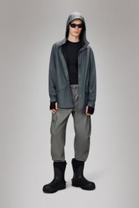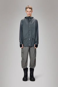 Jacket is an ever-contemporary unisex rain jacket. Characterized by a minimal silhouette with high functionality. This rain jacket features a placket with snap fastenings for closure, hood with built-in cap and two side pockets with snaps. Sleeves are finished with snaps making them adjustable for a loose or tight fit. The design is easy-to-wear with an elegant drape. The unisex rain jacket is completed with under-arm eyelets and a back yoke with concealed vents for breathable comfort. Jacket is cut from Rains' signature PU fabric and features welded seams. The finish is lightweight with a smooth feel. SKU: 12010\124 Details Composition: 100.00% PES (Polyester) Water column: 5000 mm Windproof: Protection against windchill Weight: 15.9 oz Features - Waterproof signature PU fabric - Hood with built-in cap and drawstring - Placket with snap closure - Two side pockets with snaps - snap adjustment at sleeve cuffs - Vents at arm holes and back yoke - Welded seams - Fishtail hem - Regular fit