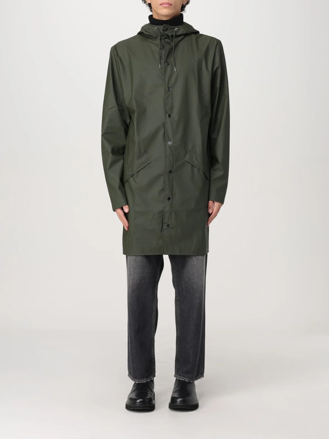 DESCRIPTION - Hood: With drawstrings - Shoulders: Regular - Sleeves: Long - Closure: With buttons, With zip - Pockets: America - Bottom: With straight hemline - Materials: Nylon - Pattern: Plain-colored DETAILS AND CARE Composition Coating: 100% Polyurethane / Main: 100% SIZE AND FIT Sizes not available Size and fit Regular fit Designer code: 12020 03 Giglio Code: 411443 Designer: Rains Collection: Rains Men Category: Clothing Rains