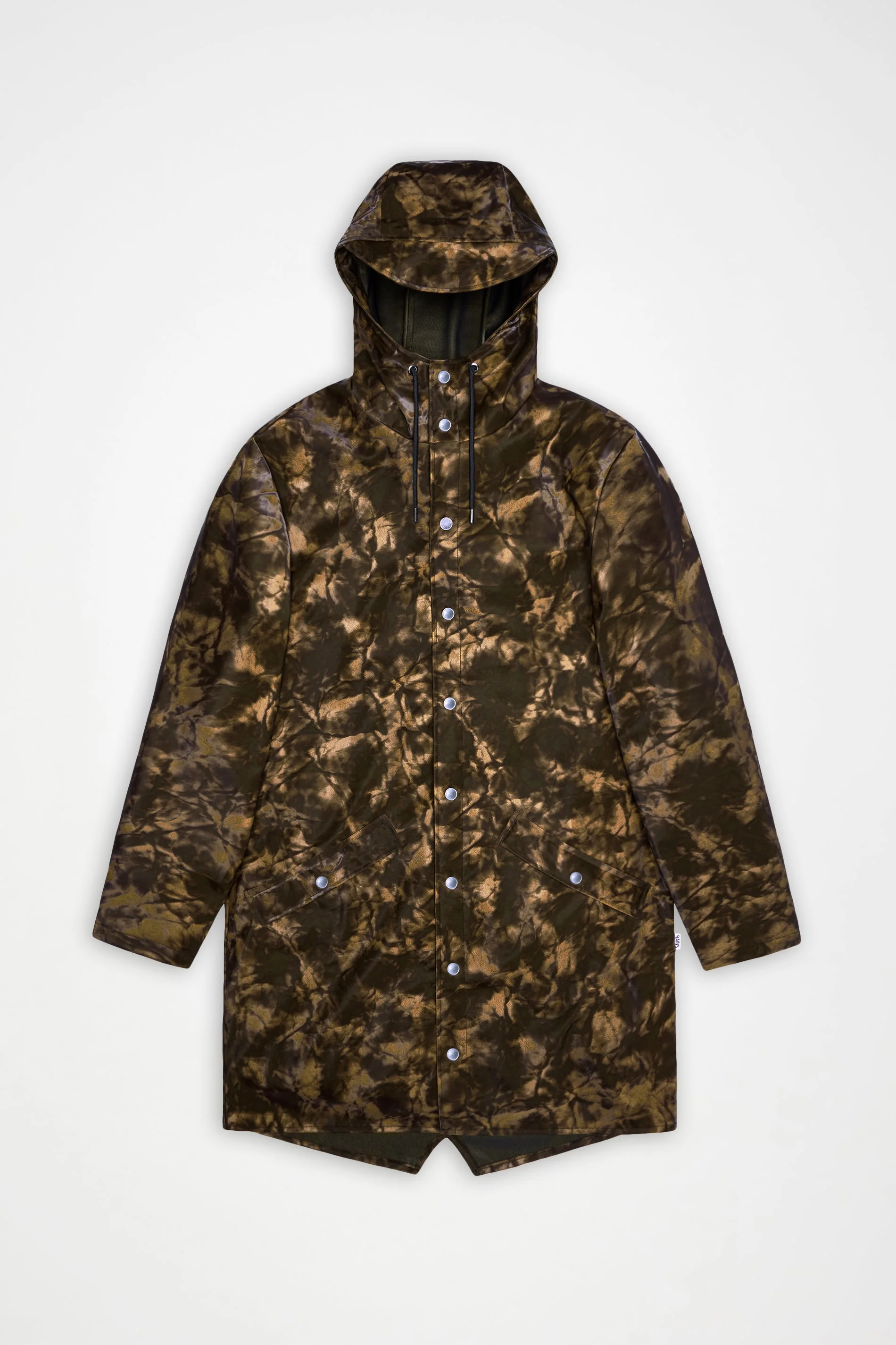 Long Jacket is an ever-contemporary unisex rain jacket. Characterized by a minimal silhouette in a long design. This rain jacket is a long version of Rains' classic rain jacket. It features a placket with snap fastenings for closure, hood with built-in cap and two side pockets with snaps. Sleeves are finished with snaps making them adjustable for a loose or tight fit. The design is easy-to-wear with an elegant drape. The unisex rain jacket is completed with under-arm eyelets and a back yoke with concealed vents for breathable comfort. Long Jacket is cut from Rains' signature PU fabric and features welded seams. The finish is lightweight with a smooth feel. SKU: 12020\152 Details Dimensions: 0 in x 0.1 in x 0.2 in Composition: 100.00% PES (Polyester) Water column: 5000 mm Windproof: Protection against windchill Fit: Long Weight: 18 oz Features: