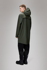 Long Jacket is an ever-contemporary unisex rain jacket. Characterized by a minimal silhouette in a long design. This rain jacket is a long version of Rains' classic rain jacket. It features a placket with snap fastenings for closure, hood with built-in cap and two side pockets with snaps. Sleeves are finished with snaps making them adjustable for a loose or tight fit. The design is easy-to-wear with an elegant drape. The unisex rain jacket is completed with under-arm eyelets and a back yoke with concealed vents for breathable comfort. Long Jacket is cut from Rains' signature PU fabric and features welded seams. The finish is lightweight with a smooth feel. SKU: 12020\03 Details Composition: 100.00% PES (Polyester) Water column: 5000 mm Windproof: Protection against windchill Fit: Long Weight: 19 oz Features - Waterproof signature PU fabric - Hood with built-in cap and drawstring - Placket with snap closure - Two side pockets with snaps - Snap adjustment at sleeve cuffs - Vents at arm holes and back yoke - Welded seams - Fishtail hem - Regular fit