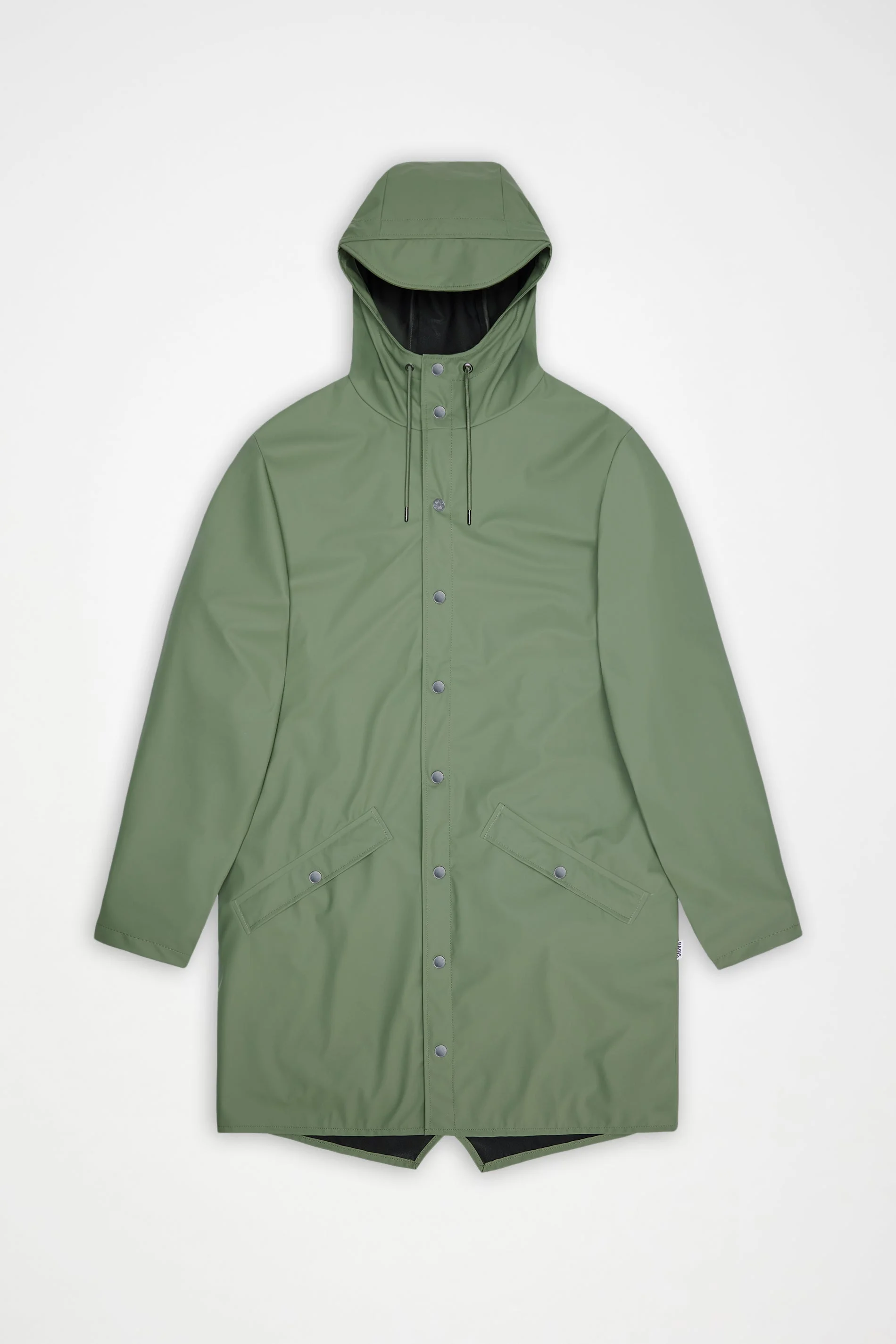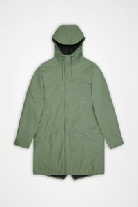 Long Jacket is an ever-contemporary unisex rain jacket. Characterized by a minimal silhouette in a long design. This rain jacket is a long version of Rains' classic rain jacket. It features a placket with snap fastenings for closure, hood with built-in cap and two side pockets with snaps. Sleeves are finished with snaps making them adjustable for a loose or tight fit. The design is easy-to-wear with an elegant drape. The unisex rain jacket is completed with under-arm eyelets and a back yoke with concealed vents for breathable comfort. Long Jacket is cut from Rains' signature PU fabric and features welded seams. The finish is lightweight with a smooth feel. SKU: 12020\145 Details Dimensions: 0 in x 0.1 in x 0.2 in Composition: 100.00% PES (Polyester) Water column: 5000 mm Windproof: Protection against windchill Fit: Long Weight: 18 oz Features: