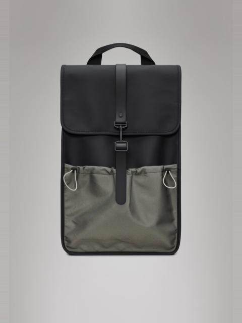 Mix Backpack is a new take on the original Backpack, characterized by an expandable side panel, polyester front pocket and sporty color blocks. Mix Backpack features a new expandable side panel in polyester. Simply unzip the side to enlarge the main compartment, which has an internal laptop pocket. The laptop pocket fits a 15" laptop with sleeve, making the squared, expandable Mix Backpack a perfect computer-ready staple for commuting on bike or by foot. Mix Backpack also features a concealed external pocket on the back panel and a front pocket with elastic drawcord adjustment. This updated design comes in different sporty color blocks. Mix Backpack is cut from a mix of Rains' signature waterproof PU fabric and polyester, engineered for carrying strength, durability and a smooth feel. SKU: 13590\01 Details Volume (liter): 6.1 gal Composition: 100.00% PES (Polyester) Water column: 8000 mm Weight: 34.9 oz Features - Waterproof signature PU fabric and polyester - Flap with magnet snap fastenings - Signature carabiner closure - Expandable side panel with zip - Front pocket with elastic drawcord adjustment - Single main compartment - External back zip pocket - Internal zip pocket - Flat pocket fits 15" laptop - Adjustable padded shoulder straps - Webbing carry handle