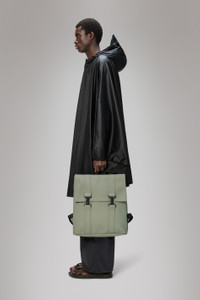 MSN Bag reinterprets the classic school backpack for city-ready wardrobes. Characterized by a minimalistic silhouette and flap with carabiner closure. This bag features an internal laptop pocket, a spacious main compartment and finished off with snap compressions at opening and sides. The laptop pocket fits a 13" laptop with sleeve, making the MSN Bag a perfect computer-ready staple for everyday commutes. MSN Bag is cut from Rains' signature PU fabric, engineered for carrying strength, durability and a smooth feel. SKU: 13300\108 Details Composition: 100.00% PES (Polyester) Water column: 8000 mm Weight: 30.7 oz Features - Waterproof signature PU fabric - Flap with signature carabiner closure - Single main compartment - Padded pocket fits 13" laptop - Snap compressions at opening - Side-mounted snap compression - Adjustable shoulder straps - Webbing carry handle