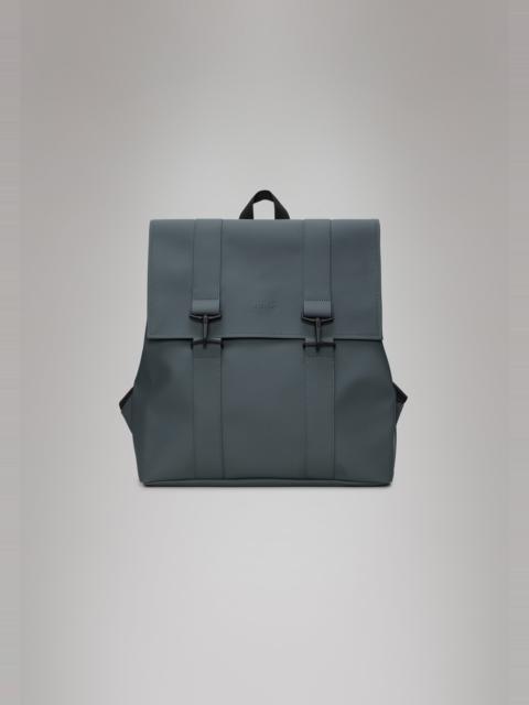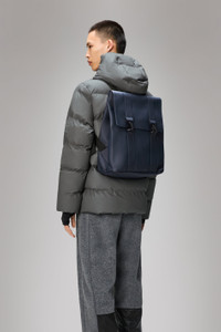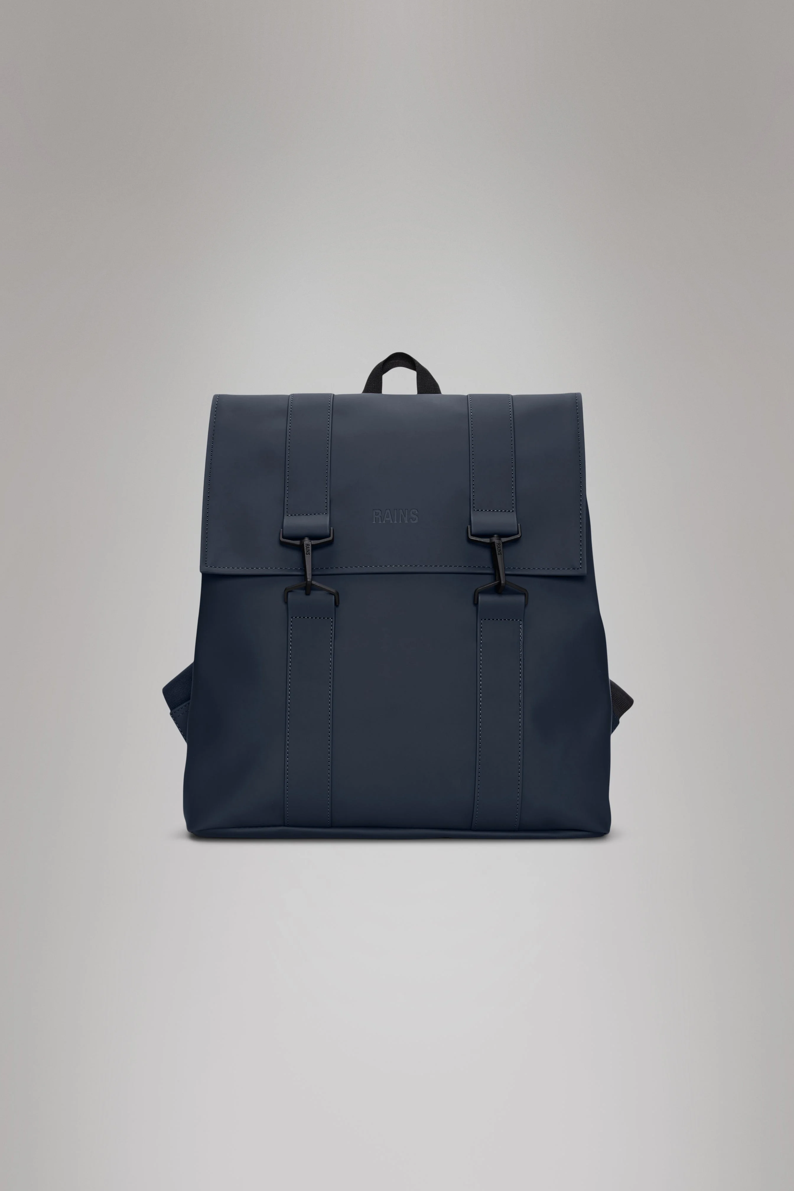MSN Bag reinterprets the classic school backpack for city-ready wardrobes. Characterized by a minimalistic silhouette and flap with carabiner closure. This bag features an internal laptop pocket, a spacious main compartment and finished off with snap compressions at opening and sides. The laptop pocket fits a 13" laptop with sleeve, making the MSN Bag a perfect computer-ready staple for everyday commutes. MSN Bag is cut from Rains' signature PU fabric, engineered for carrying strength, durability and a smooth feel. SKU: 13300\47 Details Composition: 100.00% PES (Polyester) Water column: 8000 mm Weight: 30.7 oz Features - Waterproof signature PU fabric - Flap with signature carabiner closure - Single main compartment - Padded pocket fits 13" laptop - Snap compressions at opening - Side-mounted snap compression - Adjustable shoulder straps - Webbing carry handle