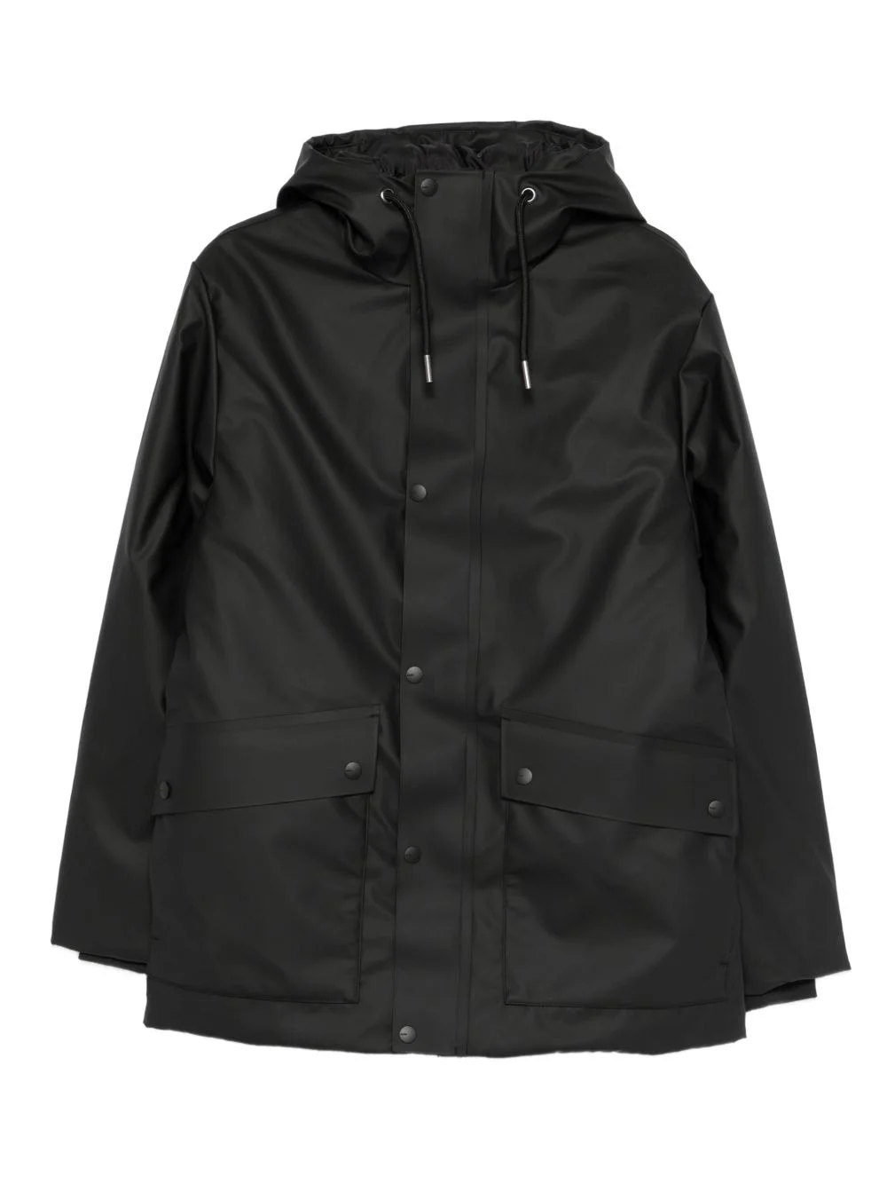 Nome hooded waterproof jacket Highlights - Black - Hooded - Front pockets - Button fastening - Drawstring - Long sleeves Imported Composition Outer: Polyester 100%, Polyurethane 100% Lining: Polyester 100% SIZE & FIT Model measurements Height 5 ft 10 in(1.78 m) Bust/Chest 33.46 in(85 cm) Hips 36.22 in(92 cm) Waist 23.22 in(59 cm) Washing instructions Machine Wash