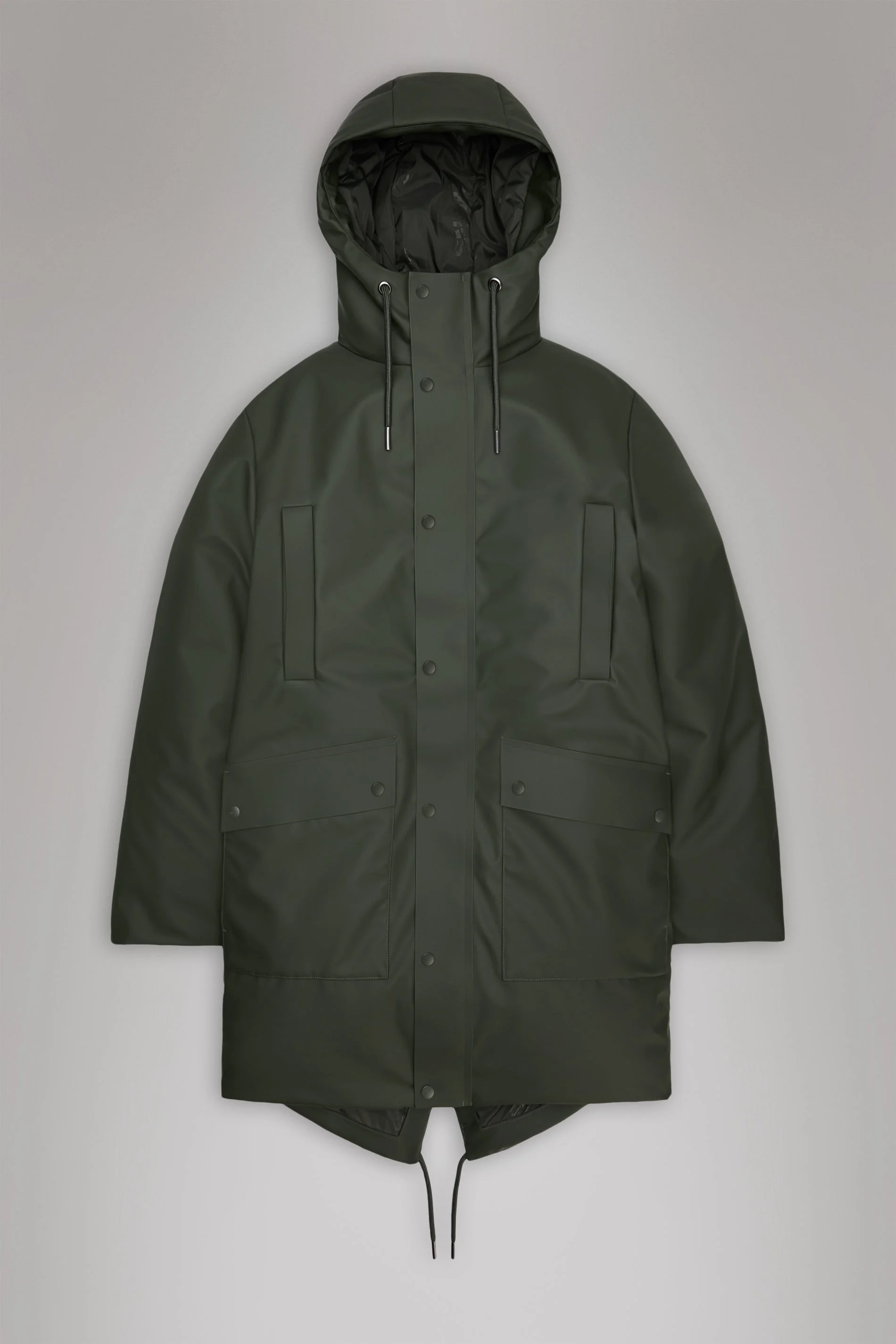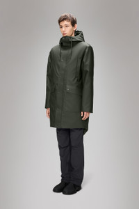 Nome Long Parka is a transeasonal piece with an urban aesthetic. This jacket delivers an easy-to-wear feel in a long fit. This parka style features heat pressed welt chest pockets, cargo pockets with side entrance and heat pressed pocket flaps and an inside zip pocket in tonal hardware. The silhouette is topped by an insulated hood with chunky tie cords. The Nome collection fills the gap between light and heavy thermal jackets. This parka has a long fit with flat padded insulation creating your go-to jacket for city commutes in between seasons. The waterproof jacket is cut from Rains’ signature PU fabric with a strong and durable woven backside. The finish is clean with a sharpened look and a smooth feel. SKU: 21460\03 Details Composition: 100.00% PES (Polyester) Water column: 5000 mm Breathability: 3.000 g/m2 water vapor transmission Windproof: Protection against windchill Fit: Long Weight: 55.7 oz Features: