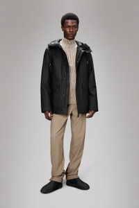 Nome Parka is a transeasonal piece with an urban aesthetic. This jacket delivers sharp edges with bold details. This parka style features cargo pockets with side entrance hidden below heat pressed pocket flaps and an inside zip pocket in tonal hardware. The silhouette is topped by an insulated hood with chunky tie cords. The Nome collection fills the gap between light and heavy thermal jackets. This parka has a regular fit with flat padded insulation creating your go-to jacket for city commutes in between seasons. The waterproof jacket is cut from Rains’ signature PU fabric with a strong and durable woven backside. The finish is clean with a sharpened look and a smooth feel. SKU: 21450\01 Details Composition: 100.00% PES (Polyester) Water column: 5000 mm Breathability: 3.000 g/m2 water vapor transmission Windproof: Protection against windchill Weight: 45.2 oz Features: