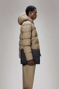 Puffer Laptop Cover 13"/14" is a simple sleeve with a secure zipper closure on top. Designed to keep tech safe in style. Featuring an easy-access zipper closure, padding and soft inner lining, this laptop cover keeps tech safe from knocks and bumps -- whether in a bag, backpack or under the arm. The outside of the design is pillowy and soft yet durable as it leans on Rains’ iconic puffer aesthetic. On the inside is a single main compartment with a soft lining that holds space for a 14” laptop. This laptop sleeve is cut from Rains’ signature waterproof PU fabric. Design has a puffed and soft aesthetic with great durability. SKU: 16680\01 Details Dimensions: 9.8 in x 0.2 in x 13 in Capacity: 0.1 gal Composition: 100.00% PES (Polyester) Water column: 8000 mm Weight: 9.2 oz Features - Waterproof signature PU fabric - Padded with recycled fiber insulation - Secure zipper closure on top - Single main compartment with soft lining - Fits 14” laptop