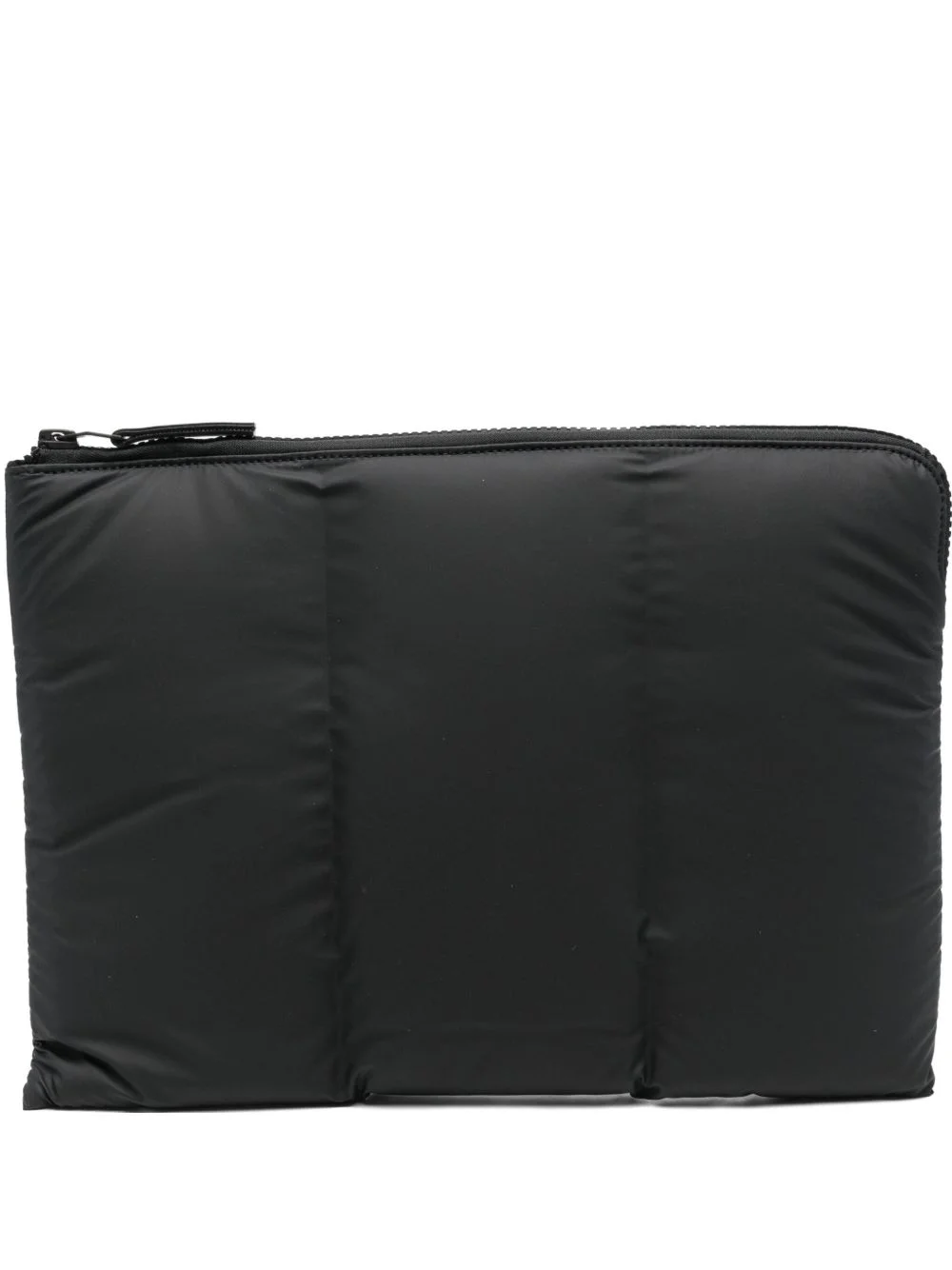 quilted zip laptop bag Highlights - Black - Quilted design - Zip fastening - Rectangular shape Imported Composition Outer: Polyester 100%, Polyurethane 100% SIZE & FIT Model measurements Height 6 ft 1 in(1.85 m) Bust/Chest 38.58 in(98 cm) Hips 37 in(94 cm) Waist 30.31 in(77 cm) Measurement DEPTH 0.78 in(2 cm) HEIGHT 11.02 in(28 cm) WIDTH 15.35 in(39 cm)