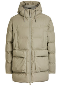 Info & Care Rains rubberised coat; Waterproof, windproof, quilted, drawstring hood, high-neck, designer plaque at sleeve, concealed ribbed cuffs, four slip pockets with fleece lining, two zip-fastening front flap pockets, internal zip-fastening pocket, fully lined Two-way zip fastening through front; 100% polyester; coating: 100% polyurethane; lining: 100% polyamide; filling: 100% polyester; Machine wash; Size & Fit Length shoulder to hem: 32 inches/ 81.5cm Midweight Regular fit Model is 6'1"/ 185cm, chest size 36 inches and wears a size medium