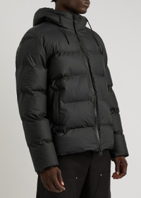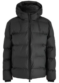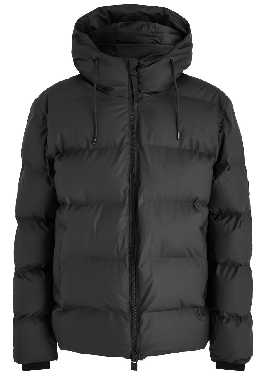 Info & Care Rains rubberised coat; Waterproof, windproof, quilted, drawstring hood at high-neck, designer plaque at sleeve, ribbed-knit cuffs underlay, slip pockets with fleece lining, internal zip-fastening pocket, fully lined Zip fastening through front; 100% polyester; coating: 100% polyurethane; lining: 100% nylon; padding: 100% polyester; Machine wash; Size & Fit Length shoulder to hem: 27 inches/ 68.5cm Midweight Regular fit Model is 6'1"/ 185cm, chest size 38 inches and wears a size medium