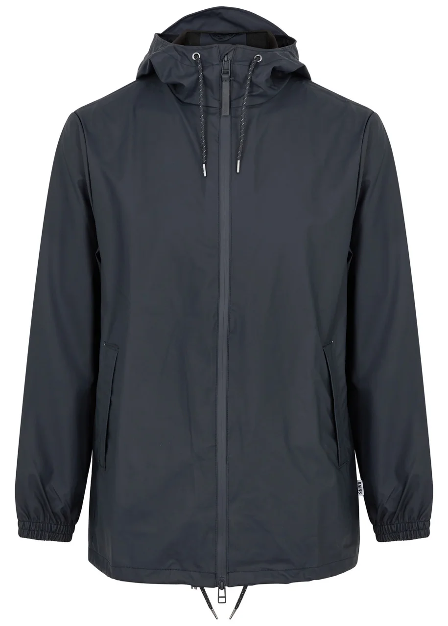 Info & Care Rains;waterproof raincoat; Water and wind resistant, drawstring hood with brim, high neck, dropped shoulders, elasticated cuffs, ventilation eyelets at underarms, two concealed side slip pockets, designer tag, storm flap at back with concealed cut-out details, toggle-fastening hem Waterproof two-way zip fastening through front; 100% polyester; coating: 100% polyurethane; Machine wash Size & Fit Length shoulder to hem: 30 inches/ 76cm Midweight; Loose fit Model is 6'1"/ 185cm chest size 38 inches and wears a size medium