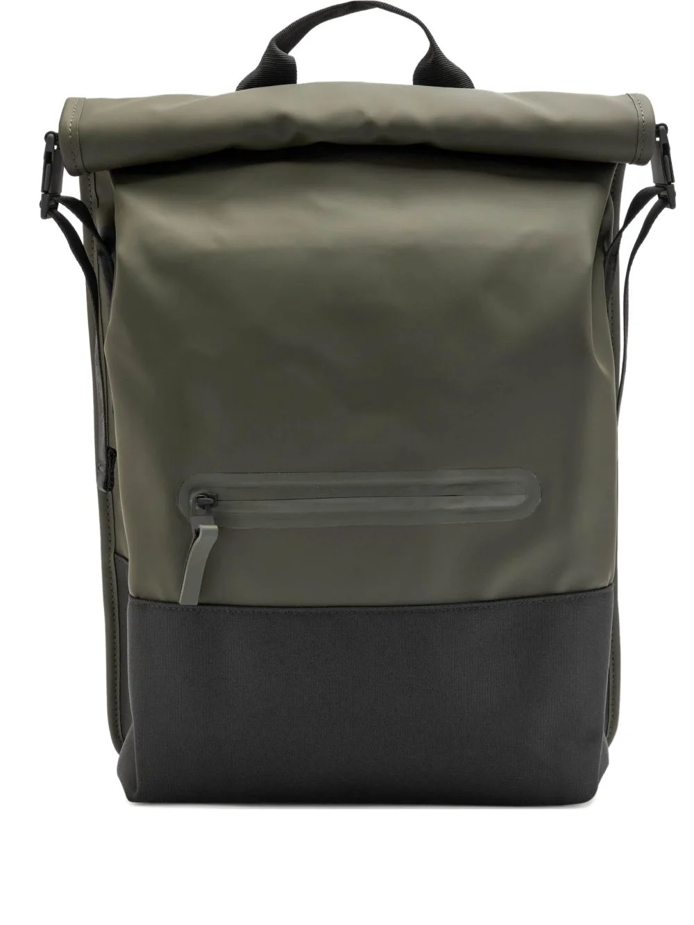 Trail Rolltop colour-block backpack Highlights - Dark green/black - Colour-block panelled design - Waterproof - Roll-top opening - Side buckle fastening - Single top handle - Two padded adjustable shoulder straps - Main compartment - Internal laptop pocket - Front zip-fastening pocket Made in Italy Composition Outer: Polyester 100%, Polyurethane 100% SIZE & FIT Measurement DEPTH 4.33 in(11 cm) HANDLE 1.96 in(5 cm) HEIGHT 17.71 in(45 cm) STRAP 11.81 in(30 cm) WIDTH 12.59 in(32 cm)