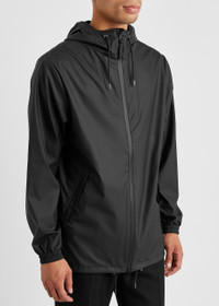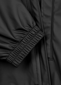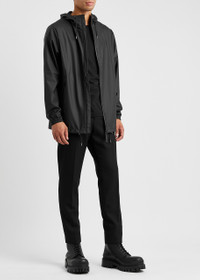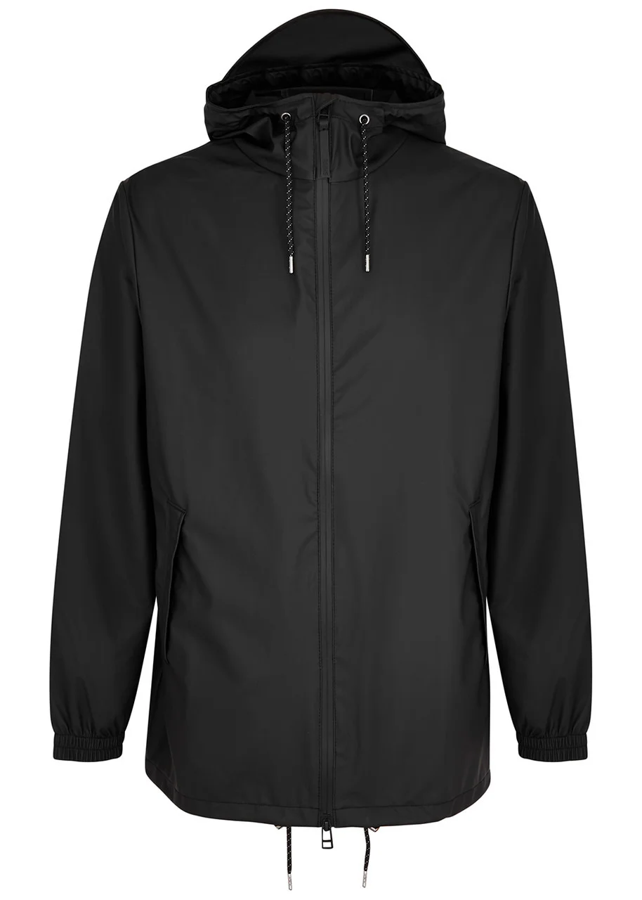 INFO & CARE - Rains rubberised raincoat - Water and wind resistant, drawstring hood with brim, high neck, dropped shoulders, elasticated cuffs, ventilation eyelets at underarms, two concealed side slip pockets, designer tag, storm flap at back with concealed cut-out details, toggle-fastening hem - Waterproof two-way zip fastening through front - 100% polyester; coating: 100% polyurethane - Machine wash SIZE & FIT - Length shoulder to hem: 30 inches/ 76cm - Midweight - Loose fit - Model is 6'1"/ 185cm chest size 38 inches and wears a size medium