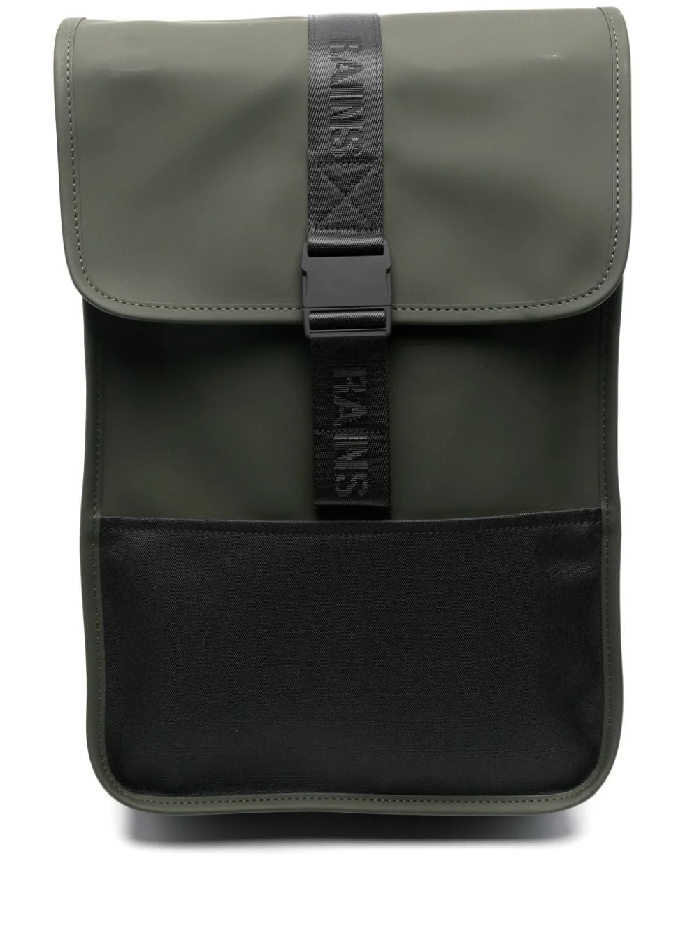 small Trail waterproof backpack Highlights - Moss green - Faux leather - Smooth grain - Waterproof - Tonal stitching - Jacquard logo motif at the straps - Panelled design - Padded mesh panelling to the rear - Foldover top with buckle fastening - All-around zip fastening - Single rolled top handle - Two padded adjustable shoulder straps - Main compartment - Internal padded laptop pocket - Branded zip puller - Full lining Imported Composition Outer: Polyester 100%, Polyurethane 100% SIZE & FIT Measurement DEPTH 7.87 in(20 cm) HANDLE 7.87 in(20 cm) HEIGHT 9.05 in(23 cm) STRAP 23.62 in(60 cm) WIDTH 15.74 in(40 cm)