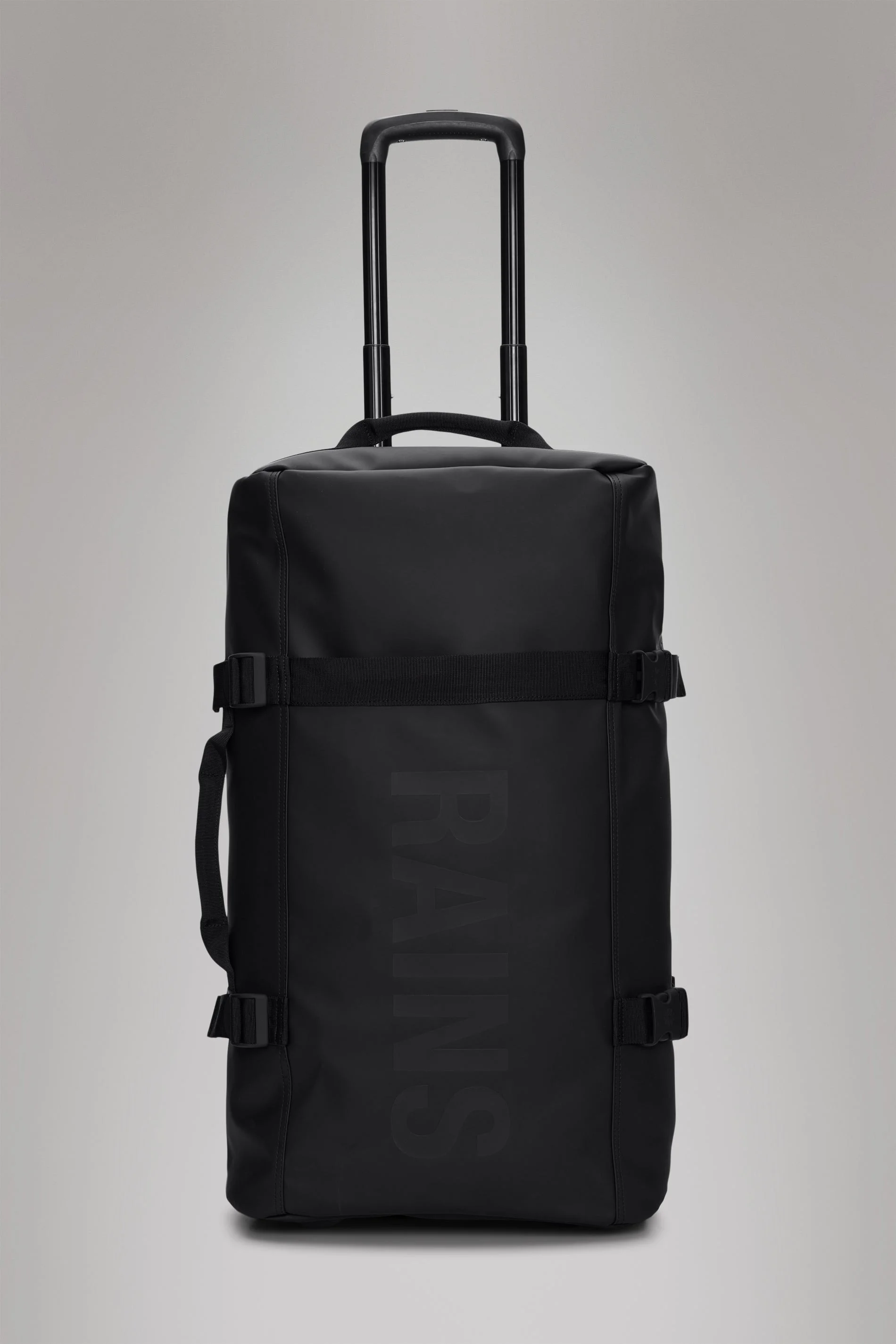Texel Check-in Bag is a travel-ready trolley bag in check-in dimensions. The bag is cut from waterproof PU fabric, designed to repel water. This waterproof trolley combines Rains’ signature waterproof PU with a half-silhouette hard shell for upright stability and general durability during transit. The bifold case features two main compartments, one including elastic crossbands and both with mesh closures. The bag can be compressed, and contents secured, via side-mounted adjustable straps. Texel Check-in Bag features two noise-free wheels, a telescopic handle*, as well as top and side carry handles for effortless transportation. Texel Check-in Bag is cut from Rains’ signature waterproof PU fabric, engineered for carrying strength, durability, and a smooth feel. *Bags from Rains’ Texel series feature trolley sleeves, which can be slid over this telescopic handle for easy transportation. SKU: 13520\01 Details Volume (liter): 16.4 gal Composition: 100.00% PES (Polyester) Water column: 8000 mm Weight: 137.6 oz Features - Waterproof signature PU fabric - Coated tonal zip closure - Bi-fold case with two mesh closures - Internal elastic crossband - Top and side webbing carry straps - Side compression straps - Telescopic comfort handle - Two noise-free wheels