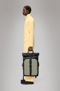 Texel Moulded Backpack is a sturdy travel-companion. Design is proportioned to house full-size tech safely behind a moulded front. Texel Moulded Backpack is a waterproof utility bag that taps into the demands of daily commutes and traveling. The silhouette is characterized by a folded top with extra wide opening and a moulded front pocket. This high-performing backpack can accommodate two laptops at once -- one in the hard front pocket with soft lining and one in the internal compartment, both fit 16" laptops. Features also include multiple pockets inside, a concealed zip pocket on the backside and drink storage on the sides. Texel Moulded Backpack features a trolley slip pocket making it slide seamlessly over telescopic trolley handles for easy transportation. Compression straps keep contents firmly in place. Texel Moulded Backpack is cut from Rains’ signature waterproof PU fabric, engineered for carrying strength, durability, and a smooth feel. Design is lined in our core grey colour to make finding and organizing easier even in dim light. SKU: 13430\84 Details Dimensions: 12.6 in x 20.1 in x 5.5 in Volume: 6.1 gal Composition: 100.00% PES (Polyester) Water column: 8000 mm Weight: 56.4 oz Features - Waterproof signature PU fabric - Folded top with zip for extra wide opening - Signature front webbing closure - Hard front compartment with microfiber lining, fits 16” laptop - Internal laptop pocket, fits 16” laptop - Concealed zip pocket on backside with key hanger - Key loop with snap hook inside pocket - Drink storage pockets on both sides - Compression straps at sides - Padded adjustable shoulder straps with chest fitting - Top handle - Trolley slip pocket (compatible with standard rolling luggages) - Padded mesh back panel