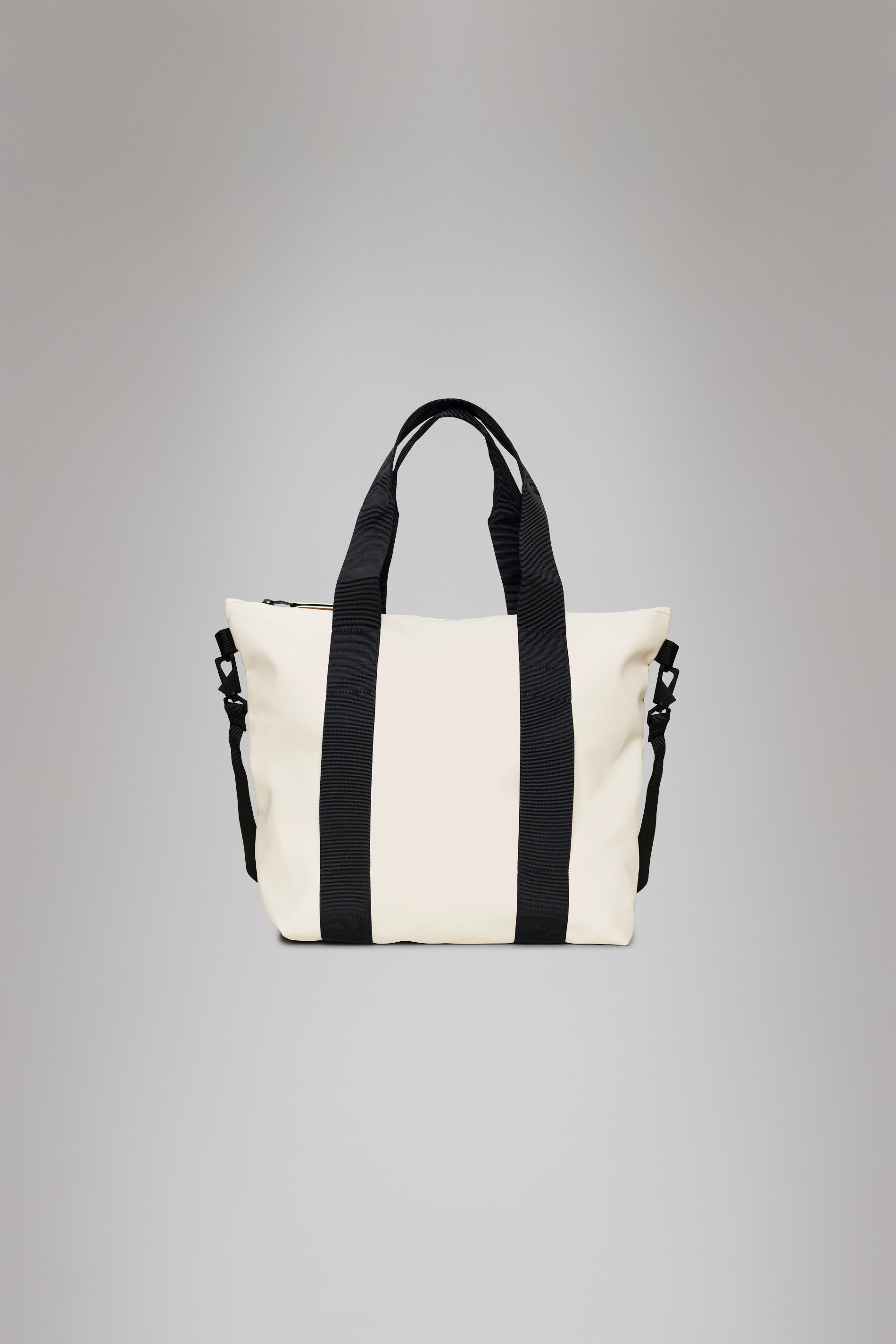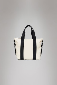 Tote Bag Mini is a waterproof tote perfect for shopping, commutes or the office. Characterized by an elevated utility-look and functional details. The full-length coated zip reveals a spacious main compartment for everyday essentials. Designed to meet your carry-needs, Tote Bag Mini offers various carrying options through its detachable shoulder strap and long hand/shoulder handles. Carry handles feature attachment rings for small items like keys. Tote Bag Mini is cut from Rains' signature PU fabric, engineered for carrying strength, durability and a smooth feel. SKU: 14160\26 Details Composition: 100.00% PES (Polyester) Water column: 8000 mm Weight: 21.2 oz Features - Waterproof signature PU fabric - Coated tonal zip closure - Single main compartment - Long hand/shoulder webbing handles with attachment ring - Detachable webbing shoulder strap