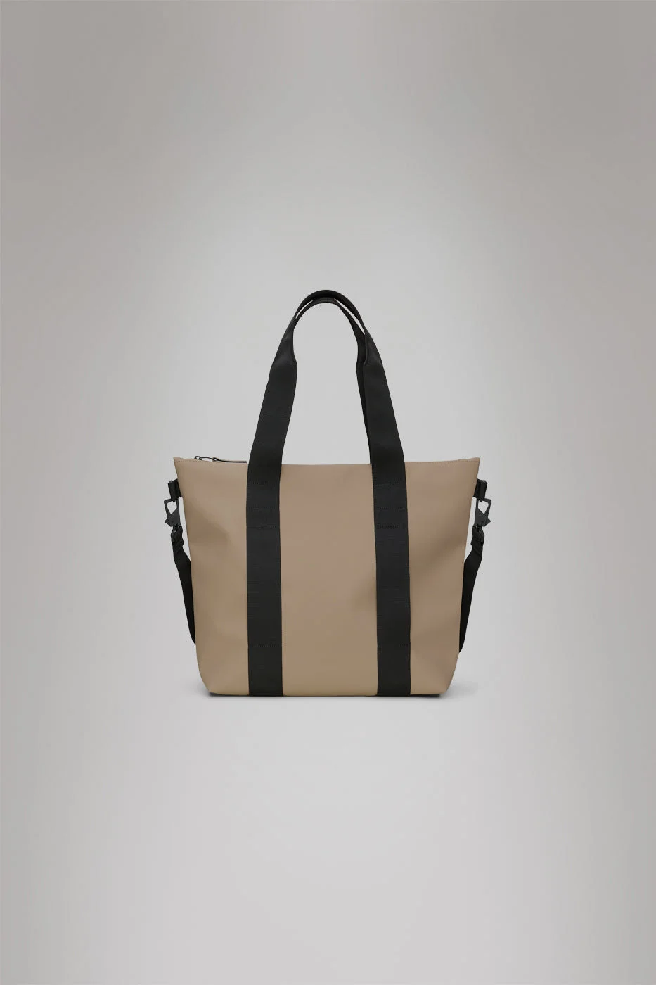 Tote Bag Mini is a waterproof tote perfect for shopping, commutes or the office. Characterized by an elevated utility-look and functional details. The full-length coated zip reveals a spacious main compartment for everyday essentials. Designed to meet your carry-needs, Tote Bag Mini offers various carrying options through its detachable shoulder strap and long hand/shoulder handles. Carry handles feature attachment rings for small items like keys. Tote Bag Mini is cut from Rains' signature PU fabric, engineered for carrying strength, durability and a smooth feel. SKU: 14160\133 Details Dimensions: 14.2 in x 5.1 in x 15.7 in Capacity: 4.2 gal Composition: 100.00% PES (Polyester) Water column: 8000 mm Weight: 21.2 oz Features - Waterproof signature PU fabric - Coated tonal zip closure - Single main compartment - Long hand/shoulder webbing handles with attachment ring - Detachable webbing shoulder strap