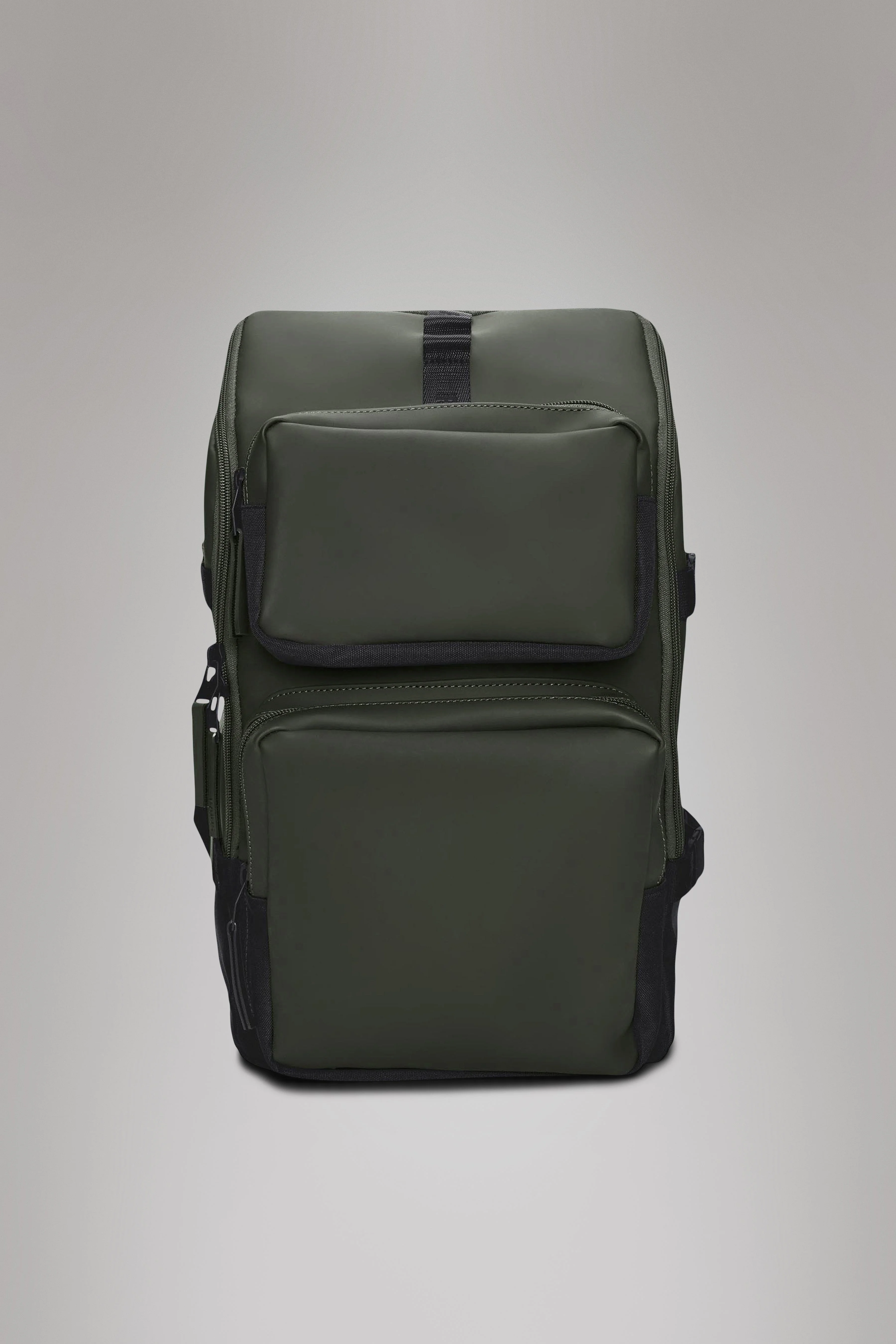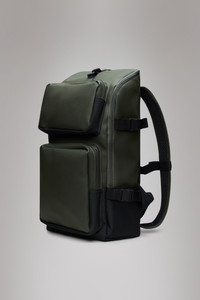 Trail Cargo Backpack is a take on the classic Trail Backpack, offering lots of features, functional details and outside pockets. The Trail Cargo Backpack features an internal laptop pocket, a spacious main compartment and two square front zip pockets, providing plenty of storage space. This design leans into the sports-utility mood of the Trail family. The laptop pocket fits a 13" laptop, making the Trail Cargo Backpack a perfect computer-ready staple. Trail Cargo Backpack is cut from Rains' signature PU fabric, engineered for carrying strength, durability and a smooth feel. SKU: 14330\03 Details Composition: 100.00% PES (Polyester) Water column: 8000 mm Weight: 31 oz Features - Waterproof signature PU fabric - Coated zip closure - Single main compartment - Two front zip pockets - Padded pocket fits 13" laptop - Padded mesh back panel - Two compression straps with buckles at sides - Webbing carry handle - Adjustable padded shoulder straps - Adjustable chest strap
