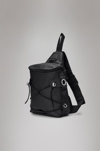 Trail Cord Sling Bag is restyled version of the original Sling Bag-design, characterized by elastic cord detailing on front panel. Trail Cord Sling Bag is intentionally designed as a backpack-inspired crossbody bag for convenience and functional use. This elevated version comes with elastic cords on the front panel and brushed silver metal hardware detailing. Open the coated zipper to a single main compartment with an internal slip pocket. The silhouette leans into the sports-utility mood of the Trail Family featuring an adjustable crossbody strap and padded air-mesh back panel for comfort. The PU covered elastic cords on the front holds extra space for an additional layer and other essentials when on the move. Trail Cord Sling Bag is cut from Rains' signature PU fabric, engineered for carrying strength, durability and a smooth feel. SKU: 14690\01 Details Volume (liter): 2.1 gal Composition: 100.00% PES (Polyester) Water column: 8000 mm Weight: 15.9 oz Features - Waterproof signature PU fabric - Coated zip closure - PU covered elastic cord detailing on front panel - Single main compartment - Internal slip pocket - Padded air- mesh back panel - Adjustable crossbody strap - Brushed silver metal hardware detailing
