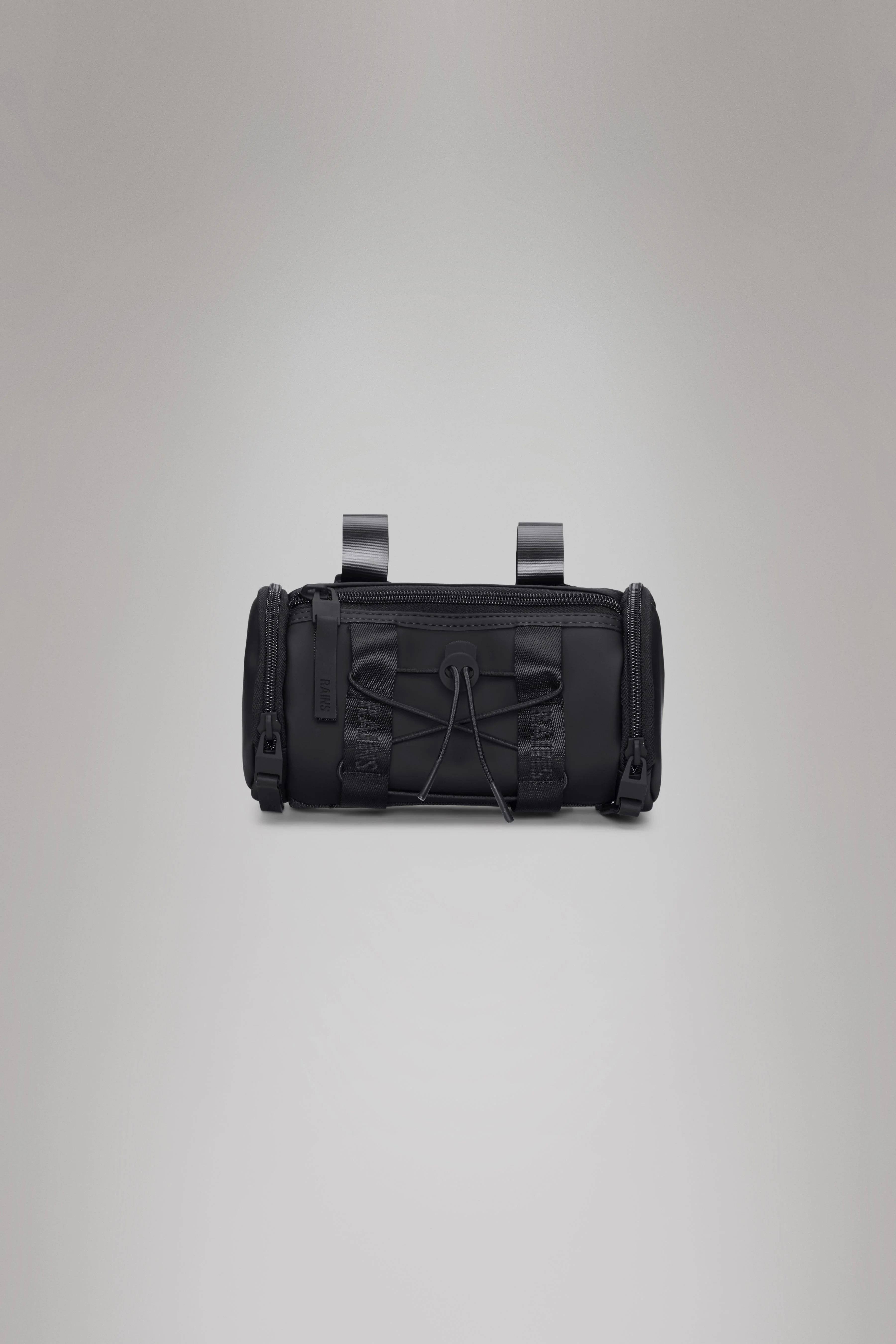 Trail Mountaineer Bar Bag doubles as a practical and waterproof bag for the bike handlebar. The cylinder-shaped design features a main compartment with zip closure and two smaller zip pockets at the ends. Elastic cords on the front hold space for extra external storage. Trail Mountaineer Bar Bag is designed with two ways to style: Either, wear it as a crossbody, on the front or back, with the adjustable shoulder strap attached via carabiners in loops on top of the bag. Adjust the shoulder strap for a personal fit. Or, detach the shoulder strap and secure the bag with velcro directly on the bike handlebars. From here you have easy access to your phone, keys etc. through the zip opening when on the move. Trail Mountaineer Bar Bag is cut from Rains' signature PU fabric, engineered for carrying strength, durability and a smooth feel. SKU: 14040\01 Details Dimensions: 4.7 in x 4.7 in x 8.7 in Composition: 100.00% PES (Polyester) Water column: 8000 mm Weight: 12 oz Features: