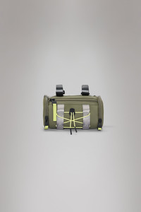 Trail Mountaineer Bar Bag doubles as a practical and waterproof bag for the bike handlebar. The cylinder-shaped design features a main compartment with zip closure and two smaller zip pockets at the ends. Elastic cords on the front hold space for extra external storage. Trail Mountaineer Bar Bag is designed with two ways to style: Either, wear it as a crossbody, on the front or back, with the adjustable shoulder strap attached via carabiners in loops on top of the bag. Adjust the shoulder strap for a personal fit. Or, detach the shoulder strap and secure the bag with velcro directly on the bike handlebars. From here you have easy access to your phone, keys etc. through the zip opening when on the move. Trail Mountaineer Bar Bag is cut from Rains' signature PU fabric, engineered for carrying strength, durability and a smooth feel. SKU: 14040\134 Details Dimensions: 4.7 in x 4.7 in x 8.7 in Composition: 100.00% PES (Polyester) Water column: 8000 mm Weight: 12 oz Features: