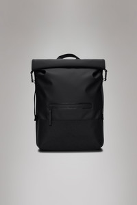 Trail Rolltop Backpack is a sporty city staple, perfect for commutes on bike or foot. Trail Rolltop Backpack is characterized by a convenient rolltop opening. To protect essentials from rain, fold the rolltop into a tight scroll and secure using the snap compressions. This design leans into the sports-utility mood of the Trail family. It is detailed with an internal padded pocket and a front zip pocket for easy access. Finished off with a buckle-fastened chest strap for a secure ride-proof fit. Trail Rolltop Backpack is cut from Rains' signature PU fabric, engineered for carrying strength, durability and a smooth feel. SKU: 14320\01 Details Composition: 100.00% PES (Polyester) Water column: 8000 mm Weight: 31.7 oz Features - Waterproof signature PU fabric - Rolltop opening with snap compression - Single main compartment - Front pocket with coated zip - Internal padded pocket - Side-mounted webbing straps with buckle closures - Padded air-mesh back panel - Webbing carry handle - Adjustable padded shoulder straps - Adjustable chest strap