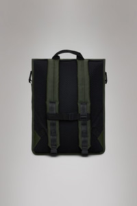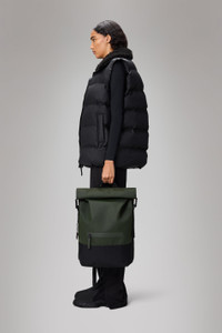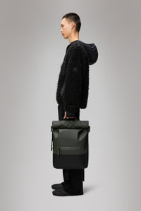 Trail Rolltop Backpack is a sporty city staple, perfect for commutes on bike or foot. Trail Rolltop Backpack is characterized by a convenient rolltop opening. To protect essentials from rain, fold the rolltop into a tight scroll and secure using the snap compressions. This design leans into the sports-utility mood of the Trail family. It is detailed with an internal padded pocket and a front zip pocket for easy access. Finished off with a buckle-fastened chest strap for a secure ride-proof fit. Trail Rolltop Backpack is cut from Rains' signature PU fabric, engineered for carrying strength, durability and a smooth feel. SKU: 14320\03 Details Composition: 100.00% PES (Polyester) Water column: 8000 mm Weight: 31.7 oz Features - Waterproof signature PU fabric - Rolltop opening with snap compression - Single main compartment - Front pocket with coated zip - Internal padded pocket - Side-mounted webbing straps with buckle closures - Padded air-mesh back panel - Webbing carry handle - Adjustable padded shoulder straps - Adjustable chest strap
