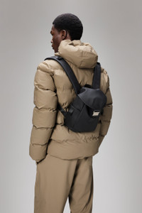 Valera Bucket Backpack Mini is a soft backpack with rounded shapes in a compact mini-size. This design is a downscaled version of the Valera Bucket Backpack. It's a mini, yet spacious enough to hold personal essentials, keys and small tech. Open the buckle, flap and drawstring closure to reveal a main compartment with a slip pocket. On the outside Valera Bucket Backpack Mini features padded adjustable shoulder straps and a padded mesh back panel for breathable comfort. The backpack is cut from Rains’ signature PU fabric with coating on a softer backside. Design has a relaxed aesthetic, yet great durability and well-known waterproof performance. SKU: 12870\01 Details Dimensions: 10.2 in x 3.9 in x 8.7 in Composition: 100.00% PES (Polyester) Water column: 8000 mm Weight: 14.1 oz Features - Signature PU coating on a softer backside-fabric - Drawstring closure covered by flap and clip buckle - Main compartment with small slip pocket - Padded adjustable shoulder straps - Padded mesh back panel