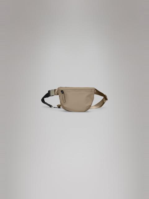 Valera Bum Bag Micro takes up no space while holding space for just about everything you need: card, keys and phone. This micro bum bag is compact in size. It features a single main compartment and coated zip closure for easy access. Valera Bum Bag Micro is fixed to an adjustable webbing strap and fastens with a brushed silver metal buckle attachment. To add a fresh pop of color simply clip on the contrast color webbing insert onto it - or remove it for a more subtle look. The design has soft rounded shapes - perfectly formed to be worn over the shoulder, as a crossbody bag or as a waist belt depending on preference and everyday-need. Valera Bum Bag Micro is cut from Rains’ signature PU fabric with coating on a softer backside. SKU: 13180\133 Details Dimensions: 6.3 in x 2 in x 7.1 in Capacity: 0.4 gal Composition: 100.00% PES (Polyester) Water column: 8000 mm Weight: 8.1 oz Features: