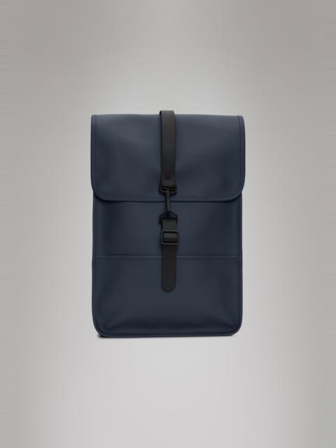 Backpack Mini is a downscaled version of Backpack. Silhouette is characterized by its squared shape and flap with magnet snap fastenings. This clean and ever contemporary rucksack features an internal laptop pocket, a spacious main compartment and a concealed external phone pocket on the back panel. The laptop pocket fits a 13" laptop with sleeve, making the squared backpack a perfect computer-ready staple for commuting on bike or by foot. Backpack Mini is cut from Rains' signature PU fabric, engineered for carrying strength, durability and a smooth feel. SKU: 13020\47 Details Composition: 100.00% PES (Polyester) Water column: 8000 mm Weight: 31.4 oz Features - Waterproof signature PU fabric - Flap with magnet snap fastenings - Single main compartment - External back zip pocket - Internal zip pocket - Flat pocket fits 13" laptop - Adjustable shoulder straps - Webbing carry handle
