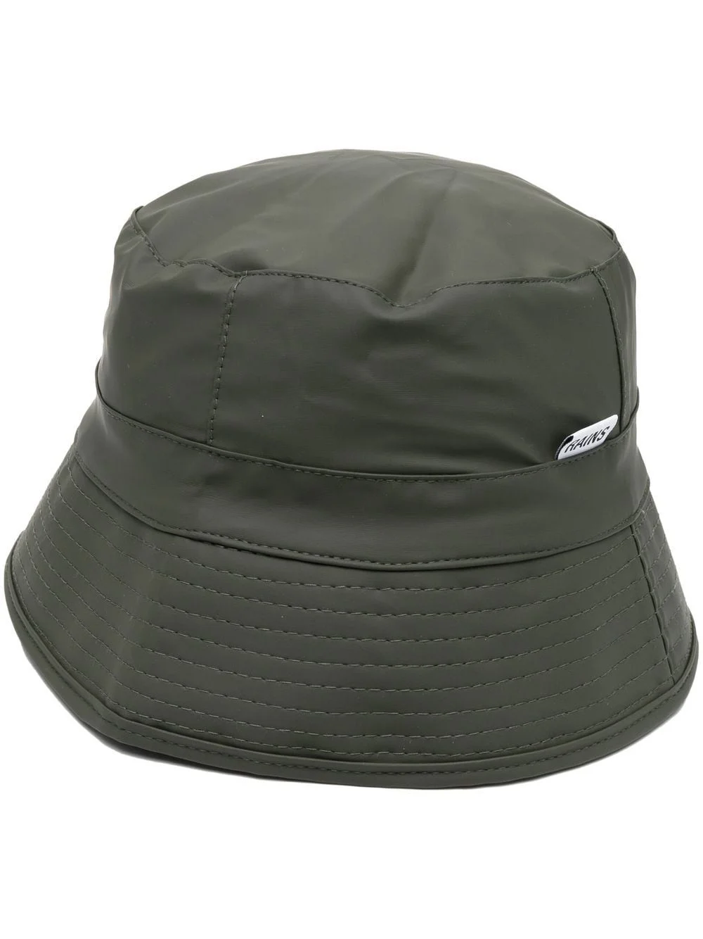 waterproof bucket hat Highlights - Khaki - Waterproof - Flat peak - Wide brim - Applique logo - Tonal stitching Imported Composition Polyester 100%, Polyurethane 100% SIZE & FIT Measurement BRIM 2.55 in(6.5 cm) CIRCUMFERENCE 23.62 in(60 cm) Washing instructions Machine Wash